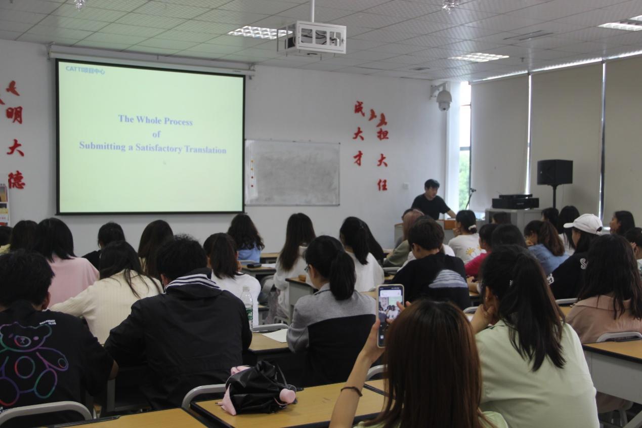 为提升同学外文翻译能力,增强翻译正式译文准确性。2022年5月27日下午,ok138cn太阳集团在专业五教室举办译文翻译指导讲座。讲座由宋定宇老师主讲,2021级2班全体同学参加。
