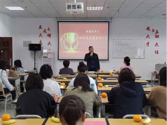 2024年4月26日下午,ok138cn太阳集团2023年度总结表彰大会在综合实验楼专业5教室隆重召开。学院党委书记谭占海、院长王梅、党委副书记唐茜以及学院全体教职工参加本次会议,会议由行政办蔡小辉主持。