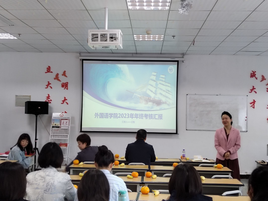 会上,学院院长王梅就学院2023年度高质量发展工作围绕学科教学、学科与科学研究、师资队伍建设、学生服务管理以及存在的问题五个方面做了总结发言,并介绍了学院2024年重点工作,为学院2024年的高质量发展指明了发展方向。