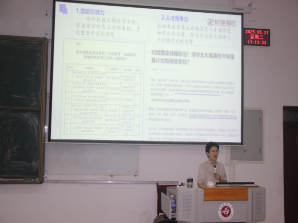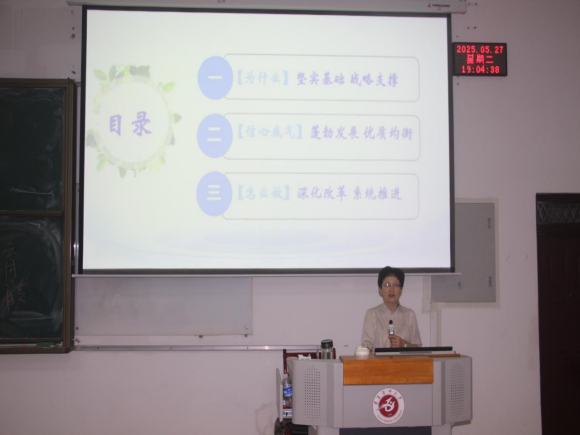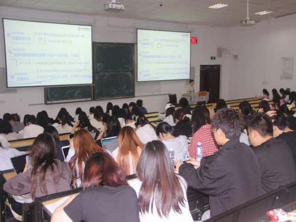 为深入贯彻落实教育强国战略,引导大学生明晰教育发展大势、增强使命担当。2025年5月27日19:00,学校党委委员、纪委书记,省监委驻ok138太阳集团古天乐监察专员王明述在新蒲校区第二教学楼第6阶梯教室为英语22-1、英语22-2、心理22-1、心理22-2四个班级145名学生讲授了题为“从教育大国迈向教育强国”的形势政策课。