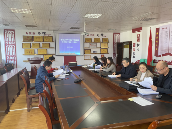 3月22日下午,英语语言文学教研室组织专家对2023届英语专业毕业论文进行了中期检查。本次检查工作专家组成员包括院党委书记谭占海教授、院长王梅教授、英语语言文学教研室主任张序娅副教授、英语语言文学教研室副主任樊宁副教授、商务英语教研室主任张晖副教授以及综合英语教研室唐磊副教授等。