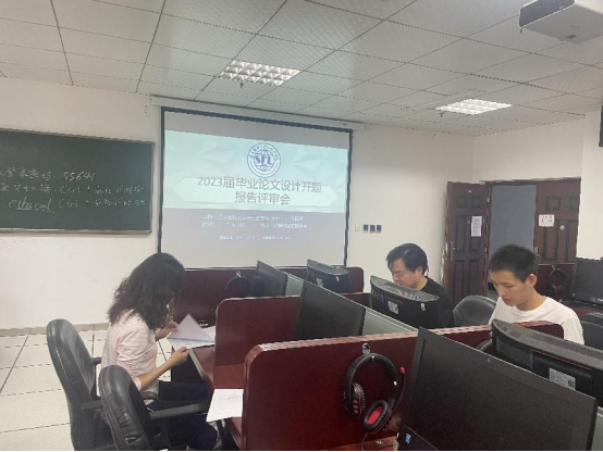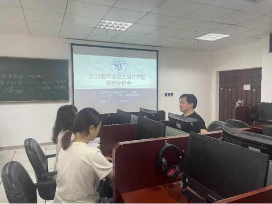评审前,参加本次评审会的专家和记录秘书共同集中在学院5楼计算机辅助翻译室,由袁媛老师介绍翻译专业学生的毕业论文要求以及2023届毕业论文开题评审的分组情况,以及评审的具体要求。两位专家共同讨论了论文开题评审中的注意事项,并强调开题报告是毕业论文的重要组成部分,旨在提高同学们的翻译批评能力,同时也要考虑到论文撰写的可操作性。