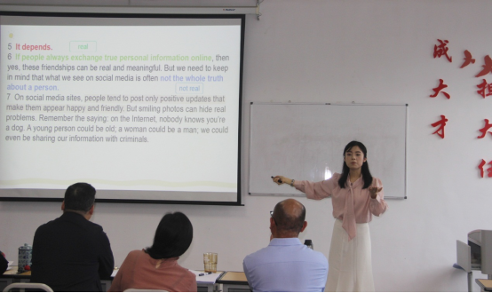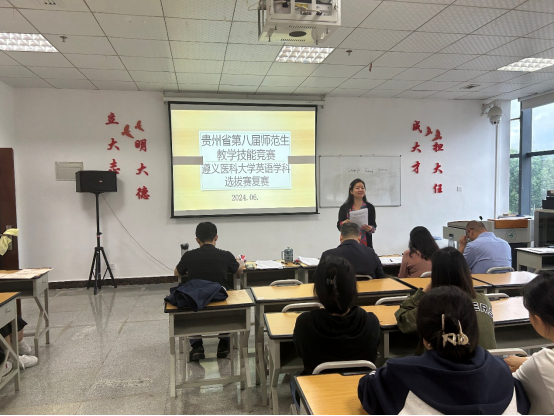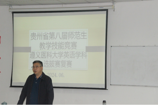 6月7日下午,贵州省第八届师范生教学技能竞赛ok138太阳集团古天乐英语学科选拔赛复赛在ok138cn太阳集团专业五教室举行。本次比赛由英语语言文学教研室承办。院党委书记谭占海教授、院长王梅教授、英语语言文学教研室樊宁副教授,综合英语教研室何永娇副教授和唐磊副教授出席并担任本次比赛评委。