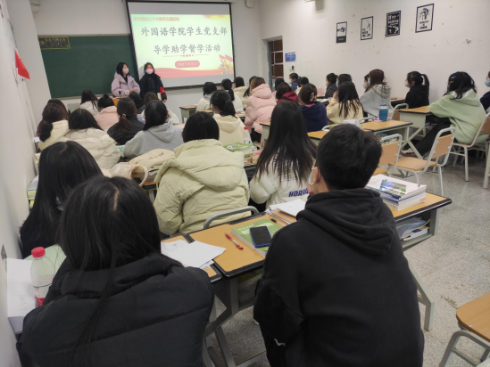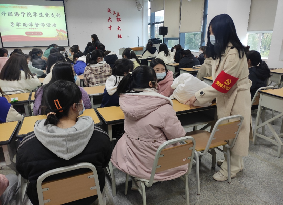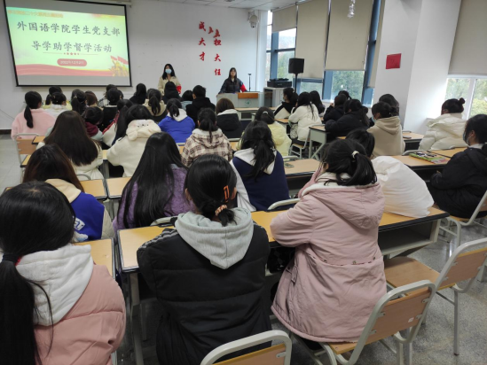 为深入学习宣传贯彻党的二十大精神,推动学习贯彻走深走实,同时持续推进为同学们办实事,2022年12月2日下午,ok138cn太阳集团在综合教学楼专业五教室开展了“学习党的二十大系列主题活动--新生导学助学督学活动”。党的二十大精神宣讲由学生党支部书记杨芳主讲,经验分享由党支部入党积极分子(三好学生)曾晨、简罗银、王方丽、张飞同志负责,2022级全体新生78人参加。