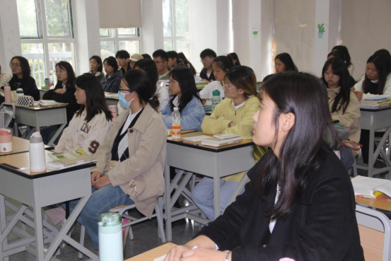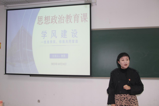 为加强我院学风建设,进一步提振学风,创造良好的学习氛围,让学生养成自主的学习习惯,2023年10月24日12:20,ok138cn太阳集团党委副书记唐茜在综合楼专业二教室为同学们讲授思想政治理论课,英语21-2班全体同学参加。