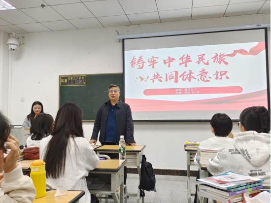 本次班会以“铸牢中华民族共同体意识”为主题,谭占海聆听了同学们精彩的分享,针对铸牢中华民族共同体意识的重要性展开思政教育。同学们通过分享榜样人物事迹,提出了个人要为铸牢中华民族共同体意识积极奉献的观点。他叮嘱同学们要树立正确的国家观、民族观,铸牢中华民族共同体意识更需要同学们身体力行。他对班级获得了上学年“省级先进班集体”称号给予了充分的肯定,对同学们提出了新的美好希冀。此外,谭占海十分关心同学们的学习情况,提出了帮扶经济困难学生的可行性方案。