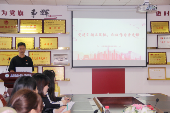 周浩以“党建引领正风帆,积极作为争先锋”为题,讲述了学生党员在高校的地位、发挥学生党员先锋模范作用的重要性、影响学生党员发挥先锋模范作用的因素以及作为学生党员要如何去发挥好党员先锋模范作用四个方面。周浩分别从学习、生活、工作等方面就如何发挥带头作用进行了深入的介绍,希望大家都能履行党员义务,自觉遵守规章制度,做好带头作用。在场的学生党员积极参与讨论,认识到了自己肩上的重任,纷纷表示首先要把自己发展好,并带动身边的同学一起发展好,勇争先锋。