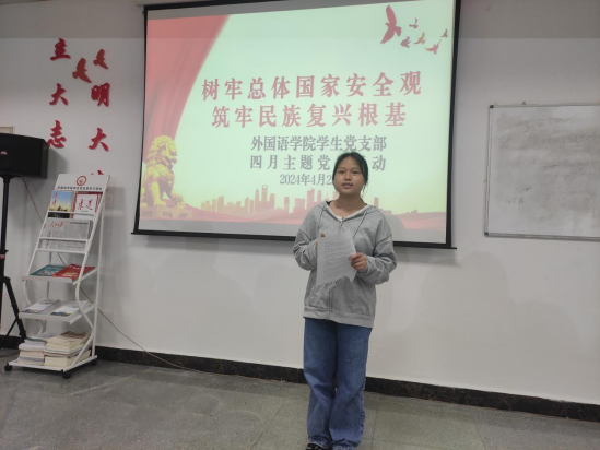 为坚定不移贯彻总体国家安全观,同时让阅读成为一种生活方式,2024年4月25日18:00,ok138cn太阳集团学生党支部在二楼党员活动室举办了四月主题党日活动。学生党支部全体成员参加本次活动。