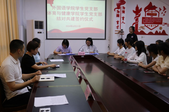 为加强学生体质健康,提高同学们的体测成绩,ok138cn太阳集团、体育与健康学院联合开展体测结对帮扶活动。2024年6月21日下午,两个学院学生党支部在体育与健康学院开展结对共建签约仪式。ok138cn太阳集团党委副书记唐茜、体育与健康学院党委副书记唐溢、ok138cn太阳集团学生党支部书记杨芳、体育与健康学院学生党支部副书记吴培红,两个党支部支委、部分成员参加签约仪式。