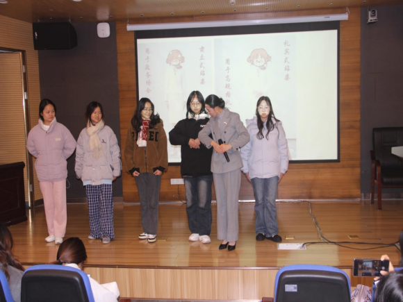 围绕礼仪的重要性及意义、校园生活中的礼仪规范、社交场合中的礼仪应用、求职过程中的礼仪指导、行站坐礼实操、试讲礼仪指南等方面,娄玲通过文字讲授、图片示例、案例教学、角色模拟、演练互动等形式授课。良好的日常交往礼仪不仅能够增进人与人之间的感情,还能够提升个人的形象和气质。利用互动示范和问答,她让同学们在轻松愉快的氛围中掌握了礼仪的基本规范和实际应用技巧。培训过程中,同学们积极参与互动环节,就自己在礼仪方面遇到的问题向娄玲请教,她耐心解答,并给出了实用的建议和指导。此次培训让大家受益匪浅,同学们纷纷表示在今后的学习工作中多实践、多运用,树立好、展现好英语专业学生的良好形象。