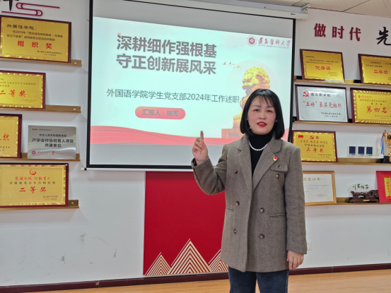 教工第二党支部书记何永娇、教工第三党支部书记周田莉、学生党支部书记杨芳和教工第一党支部书记樊宁依次围绕基层党支部2024年“三会一课”开展情况、支部标准化建设、支部的引领带头作用等重要内容,进行了述职汇报。学院党委委员分别对各支部书记的汇报进行逐一点评。