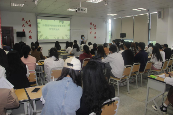 为深入学习贯彻习近平总书记关于加强民法典学习宣传的重要指示精神,增强师生法治意识,营造浓厚的校园法治教育氛围。2023年5月19日12:00,ok138cn太阳集团在综合楼二楼党员活动室组织学习民法典活动。学院所有寝室长、各班治保委员、学生会治保部成员参加学习。