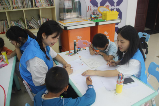 活动现场,志愿者们给小朋友发放画笔以及A4纸,开始“画出你最爱的人”的活动。他们当起了“小老师”,分为四组教小朋友们画画,悉心教导小朋友们绘画的方法和技巧。小朋友们也充分地发挥了他们天真无邪的想象力,绘出了一幅幅各有特色、生动活泼的画像。同时为了让小朋友们更好地了解、传承和发展中华传统文化,现场还教授了小朋友们《登黄鹤楼》《相思》两首具有代表性的中国传统古诗。“昔人已乘黄鹤去,此地空余黄鹤楼……红豆生南国,春来发几只……”小朋友们热情地朗诵两首诗歌,有一些小朋友甚至学完就可以背诵,志愿者们感动又惊喜。活动的最后,一张张相片将珍贵的回忆留存,小朋友们期待着与志愿者们的下一次相遇。