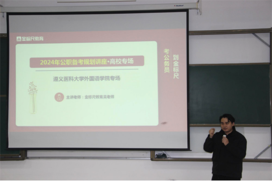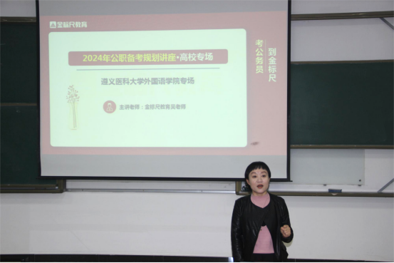 为助力我院学生全面了解选调、国省考及事业单位招考政策,将就业指导前移,2023年10月20日16:00,ok138cn太阳集团邀请贵州金标尺优众教育咨询有限公司教研负责人吴沈川在第二教学楼第十四阶梯教室举办公职备考规划讲座。讲座由ok138cn太阳集团党委副书记唐茜主持,2020级在遵实习学生、2021级共120多名学生参加培训。