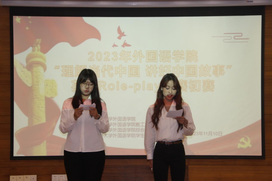 赛程围绕“理解当代中国·讲好中国故事”为主线,组成6支英语短剧表演队伍。比赛过程中,选手们慷慨激昂,以自己的视角诉说着意蕴深远、历史悠久的中国文化,选手们还结合时代背景,聚焦乡村振兴战略背景下驻村助农,将中国故事具象于观众心中,由古代传统文化延伸至现代的机遇与挑战,以青年特有的活力与激情,表达对祖国的骄傲与热爱。刘福娟对所有参赛队伍的表现进行点评,肯定了选手们良好的演讲能力,愿选手们再接再厉,日后有更出色的表现。最终由SOTS队和专业团队代表学院参加校级决赛。