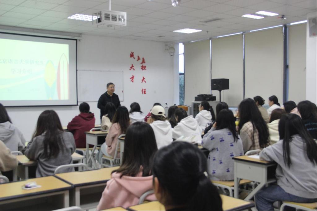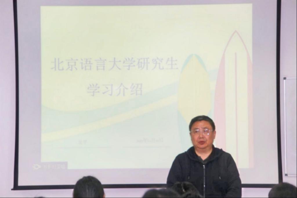 为充分调动ok138cn太阳集团学子的学习积极性,增强学生的学习信念,为学生提供明确的考研方向,2023年11月10日16:00,ok138cn太阳集团在综合楼专五教室召开“北京语言大学研究生学习介绍”讲座。本次讲座由北京语言大学吴平教授主讲,2021级部分同学参加。