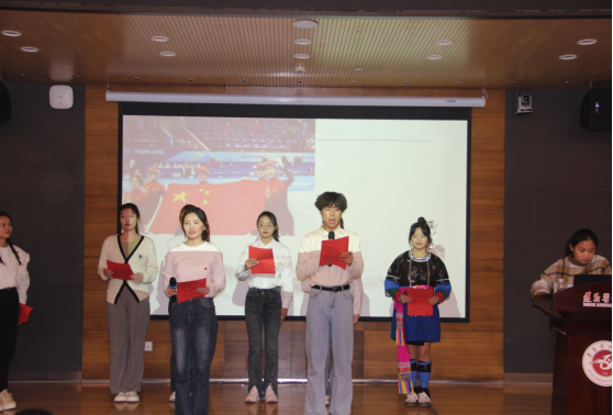 为宣扬爱国意识,提升学生的人文素养,提高学生的朗诵水平,构建和谐校园语言生活,营造浓郁的文化氛围,2023年11月28日19:30,ok138cn太阳集团在图书馆1号多功能厅举办“强国复兴有我 青春挺膺勇担当”诗歌朗诵比赛初赛。本次比赛由ok138cn太阳集团党委副书记唐茜、团委副书记刘福娟、商务英语教研室罗雯担任评委,共有七支队伍参赛,100名观众到场观看。