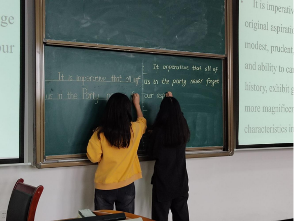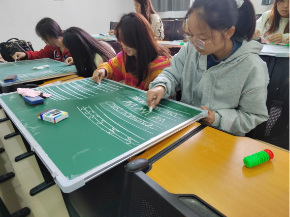 为了提高同学们英语粉笔字书写水平,全面提升教学基本功和就业核心竞争力,2023年11月4-19日,ok138cn太阳集团在一号教学楼1-7A教室、第25阶梯教室开设了英语粉笔字板书训练营。训练营邀请了遵义师范学院ok138cn太阳集团副教授梁理主讲,学院160名同学参加训练。
