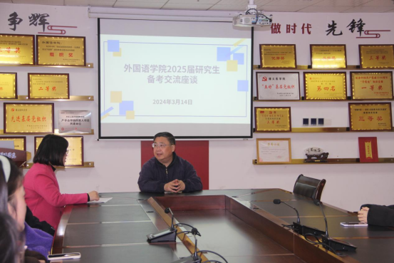 考研学子已扬帆起航,为助力学生考研备战,增强学子们的备战信心,推进学风建设。2024年3月14日12:00,ok138cn太阳集团在综合楼四楼414会议室召开2025届考研指导交流座谈。本次座谈会由ok138cn太阳集团学生党支部书记杨芳主持,由北京语言大学吴平教授主讲,2021级有考研意向的同学参加。