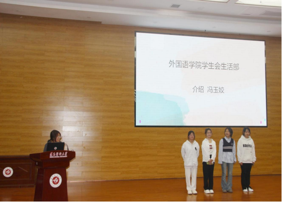 为了做好学生服务工作,学生会在会上进行了工作介绍。学生会主席先对学生会部门设置进行了介绍,各部门部长介绍了部门成员、部门工作内容。