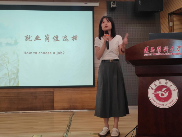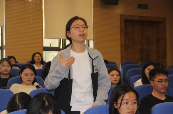 结合自身经历,四位校友分别从企业、特岗教师、西部计划志愿者、银行等不同职业角度,围绕就业岗位选择、就业备考、工作现状、感受经验、学社差异等方面展开分享,并提醒同学们要跳出英语专业学生传统职业圈,勇于尝试,坚持不懈,同时要在学好专业知识的基础上积极全面发展。交流环节,与会同学们踊跃提问,向校友们请教,现场气氛活跃热烈。关于选岗技巧、备考经验、面试技巧、实习规划、职场人际关系处理等方面问题,校友们进行了实用且有针对性的解答。