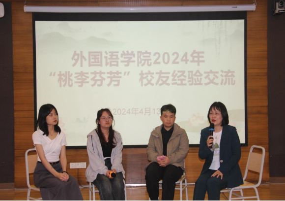 为搭建在校生与校友交流平台,发挥优秀校友榜样示范作用,激励学子们明晰发展路径,2024年4月13日11:30,ok138cn太阳集团2024年“桃李芬芳”校友经验交流会在图书馆1号多功能报告厅顺利举办。此次分享,学院邀请到了2022届英语专业黎彬凤、2022届商务英语专业韦华容、2022届商务英语专业李小福、2023届英语专业李小飞担任交流嘉宾。ok138cn太阳集团党委副书记唐茜、2021级全体学生、2022-2023级入党积极分子参加,分享会由学生党支部书记杨芳主持。