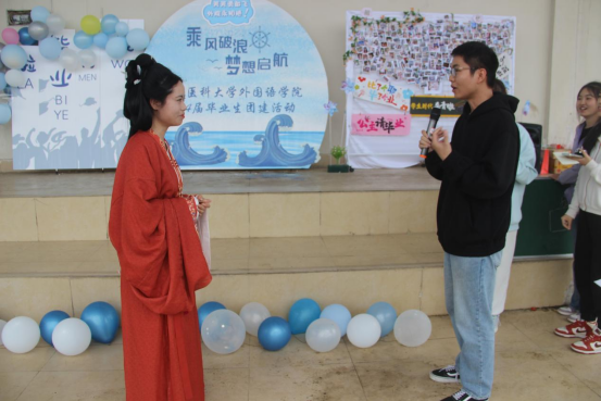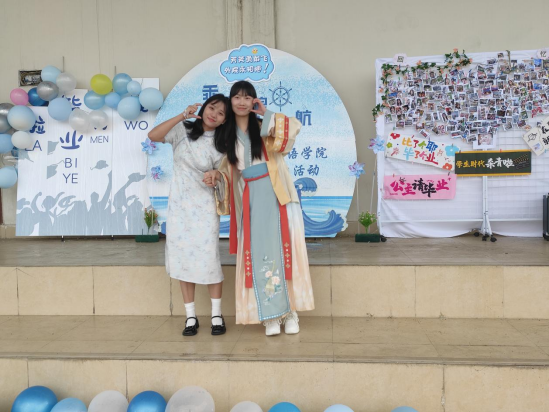 英语班携手商务英语班为大家带来了一场展现青春风采的T台秀,不仅展现了毕业生的自我个性,更是学校美学教育的实践课堂。英文独唱《Price Tag》、中文合唱《圣诞节》《遇见》让毕业生们热情高涨,青春洋溢、俏皮可爱的舞蹈《Gee》引来阵阵欢呼,精彩的游戏比拼“你画我猜”“歌曲猜猜猜”等将纪念活动推向高潮,全体毕业生在一曲《栀子花开》的大合唱中热泪盈眶、依依惜别;最后,学院为2024届毕业生准备了一份满载着祝福的“甜蜜”--毕业蛋糕,跟毕业生们一起从2020走向未来。
