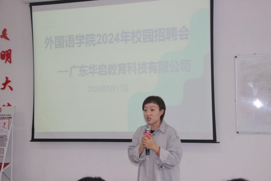 为了增进学生对外贸行业的了解,积极推进学生就业工作,2024年5月17日10:30,ok138cn太阳集团在专业五教室开展了2024届毕业生招聘宣讲会,宣讲会由学院党委副书记唐茜主持,广东华启教育科技有限公司代表主讲,专职辅导员、2024届未落实就业去向的毕业生参加。