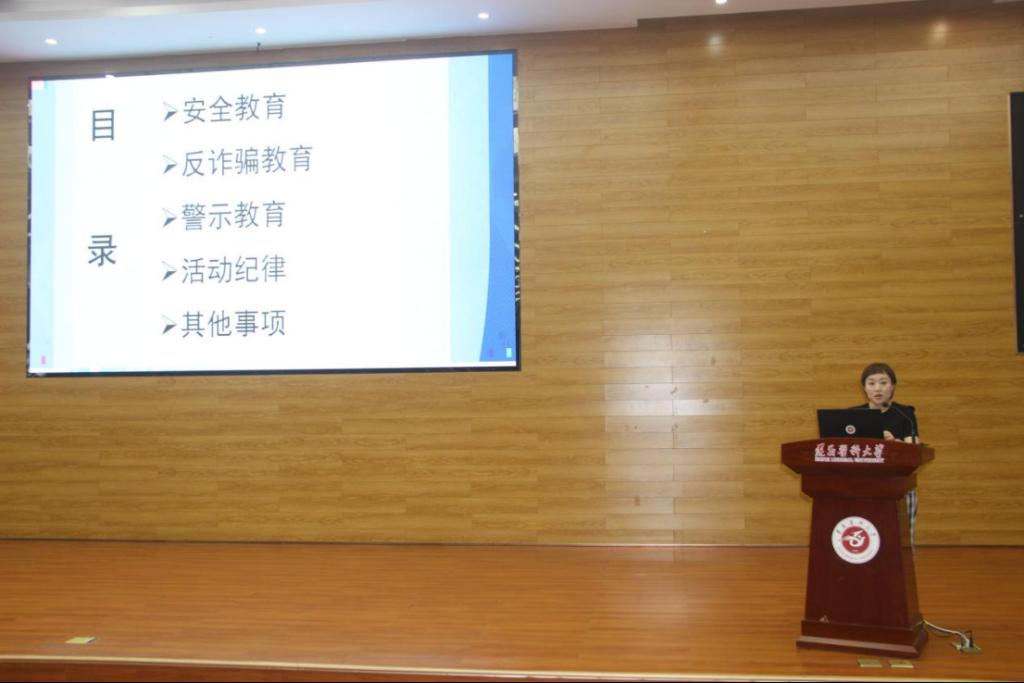 阮佳佳从安全教育、反诈骗教育、警示教育、活动纪律、请销假情况等方面展开讲解。首先,她提醒全体同学要注意交通安全,勿违规使用电动车,注意财产安全,炎热夏天防溺水,重视人身安全。其次,通过一些身边实例,她再次提醒同学们保持警惕,防诈反骗;通报了近期有损大学生形象、有悖社会公序良俗的违纪情况,近期学生违规私自更换床位的违纪情况。最后,她总结了近期活动中存在不守时、不认真、不积极等问题,重申了活动纪律。针对近期病假频繁,阮佳佳提醒同学们要加强锻炼、保养身体、注重饮食卫生。
