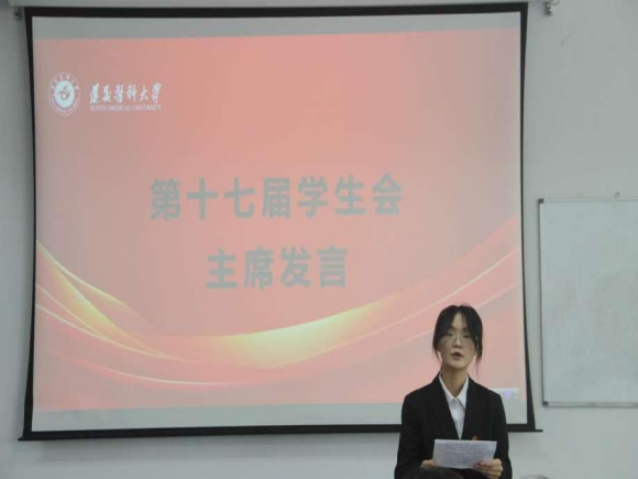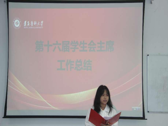 第十六届学生会主席项飘进行了工作总结,她表达了对老师以及学生会全体成员的感谢,希望新一届学生会全体干部能够继往开来,不断创新。新一届主席李丽继任发言,她表示当选为学生会主席责任重大,强调在接下来的工作中会加强学生干部素质建设与团队建设、全方位监督反馈、不断学习、脚踏实地。她期待与大家一同书写学生会的新篇章。新一届团总支副书记余艳萍说,她对未来充满信心,强调在未来工作中会传承创新、团结协作,有责任担当。