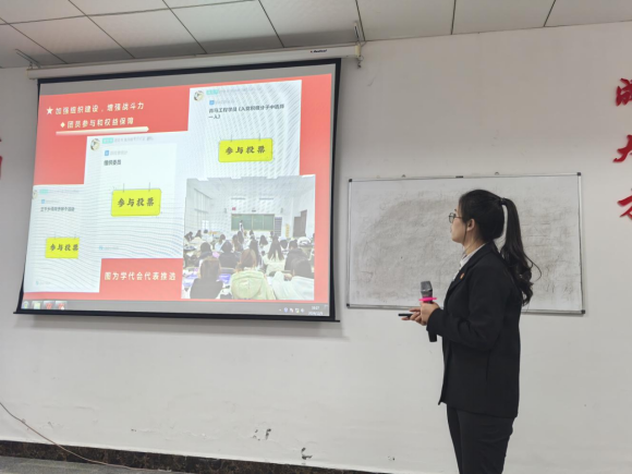 为进一步落实从严治团,切实抓好班团一体化建设,不断拓宽团支部工作的深度和宽度。2024年12月9日16:00,ok138cn太阳集团团委在综合楼专业五教室举办了2024年团支部书记述职汇报。ok138cn太阳集团党委副书记唐茜、学生党支部书记杨芳、团委负责人郑婉萍、第十六届学生会团总支副书记陈世操担任评委,ok138cn太阳集团2022-2024级全体班团干部参加。