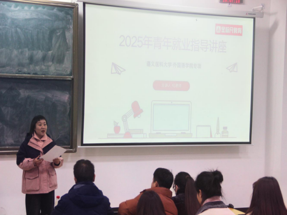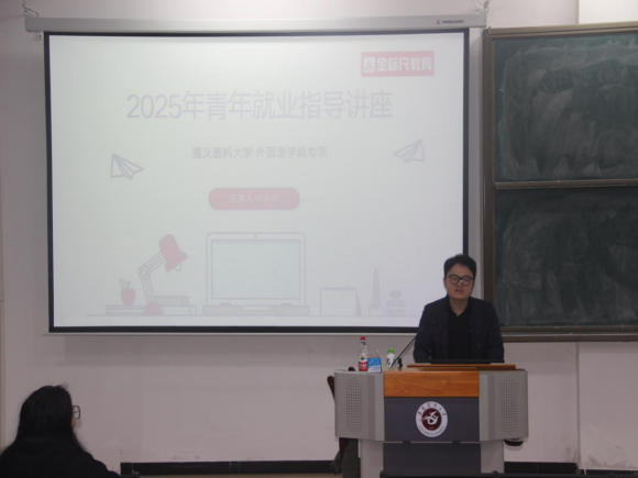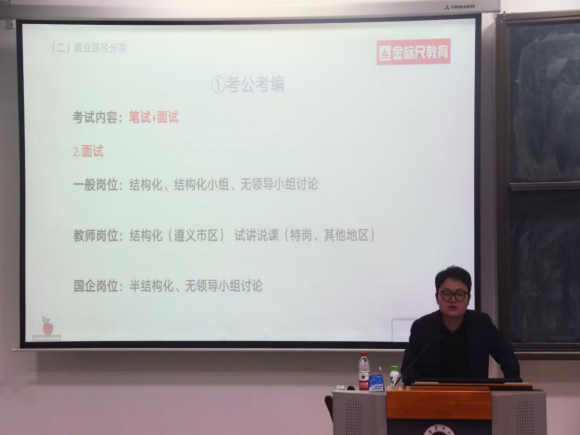 为了帮助大学生进一步把握就业方向、找准职业定位、提升就业竞争力,2024年12月23日18:00,ok138cn太阳集团在第三教学楼17阶梯教室开展了就业指导讲座。本次就业指导讲座由学院党委副书记唐茜主持,邀请到了贵州金标尺优众教育咨询有限公司何向旭作为主讲,2021-2022级近170名同学参与。