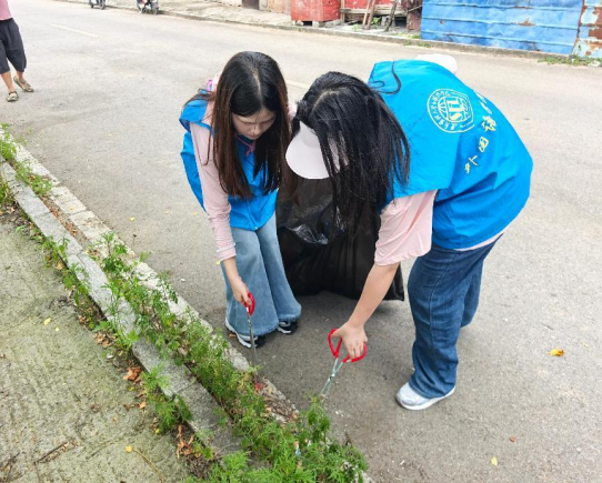 活动以社区生态治理为主,围绕社区开展卫生清洁。同学们身着志愿者服装,在社区工作人员的引导下,携带清洁工具,以小组为单位分别对社区人行道、绿化带及周边街巷进行全面卫生打扫。在进行打扫的同时,同学们将清扫的垃圾进行分类,并向社区居民普及垃圾分类的重要性,鼓励他们养成垃圾分类的好习惯,共同营造干净整洁的社区环境。经过同学们的细致清扫,累计清理了10余袋垃圾,社区环境也变得焕然一新。