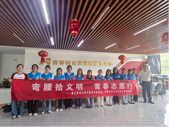 在国家关于青年工作的重要精神指引下,为引导青年学生在社会实践中厚植家国情怀、增强社会责任感、提高社会实践能力。2025年6月17日14:30,ok138cn太阳集团团委联合博雅学生社区到遵义市新蒲新区青城桥社区开展“弯腰拾文明,青春志愿行”大学生社区实践活动。活动由ok138cn太阳集团团委临时负责人郑婉萍带队,学院24级团干部、2024-2025年新发展团员及博雅学生社区10余名学生代表参加。