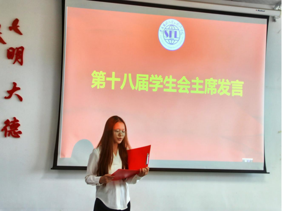 唐茜在讲话中向第十七届学生会的辛勤付出致以诚挚的感谢,同时,她对学生会未来发展表达了真诚祝愿并围绕工作开展提出三点期望:一要坚定理想信念,筑牢思想根基;二要深耕专业特色,创新服务路径;三要锤炼过硬本领,凝聚团队合力。交棒传新的时刻,全体成员齐声合唱《我们的明天》,徐徐歌声中凝聚着对未来的美好憧憬。大会在庄重而温馨的全体合影中圆满落下帷幕。