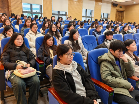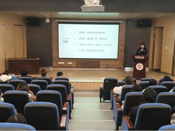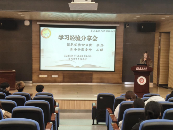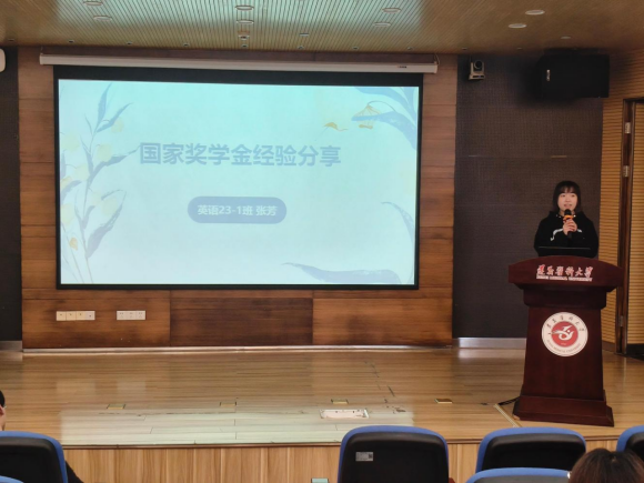 2025年11月4日15:50,图书馆1号多功能报告厅先后开展了两项分享活动。在国家奖学金获得者经验分享环节,英语23-1班、中共预备党员张芳同学以自身成长为切入点,不仅讲解合理制定学习计划、科学分配时间、利用碎片化巩固知识的具体路径,更结合“如何应对学习挫折”分享心路历程,鼓励同学们以“坚持不懈、乐观向上”的奋斗精神面对学业挑战,彰显党员学子的初心与担当,让在场2024级、2025级同学既学到方法,更汲取精神力量。