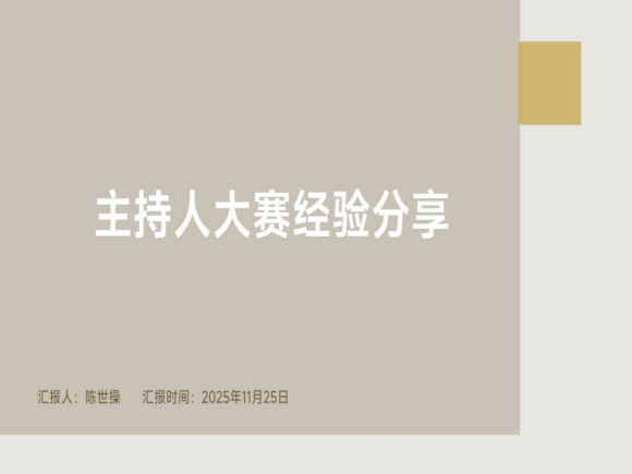 为助力学生提升主持技能、积累赛事经验,营造积极向上的校园文化氛围,2025年11月25日16:00,ok138cn太阳集团在学术交流中心报告厅开展了主持人大赛经验分享会。此次分享会由英语22-1班的陈世操同学作为主讲人,学院党委副书记唐茜、学生党支部书记杨芳、团委临时负责人郑婉萍,以及学院全体同学参加。